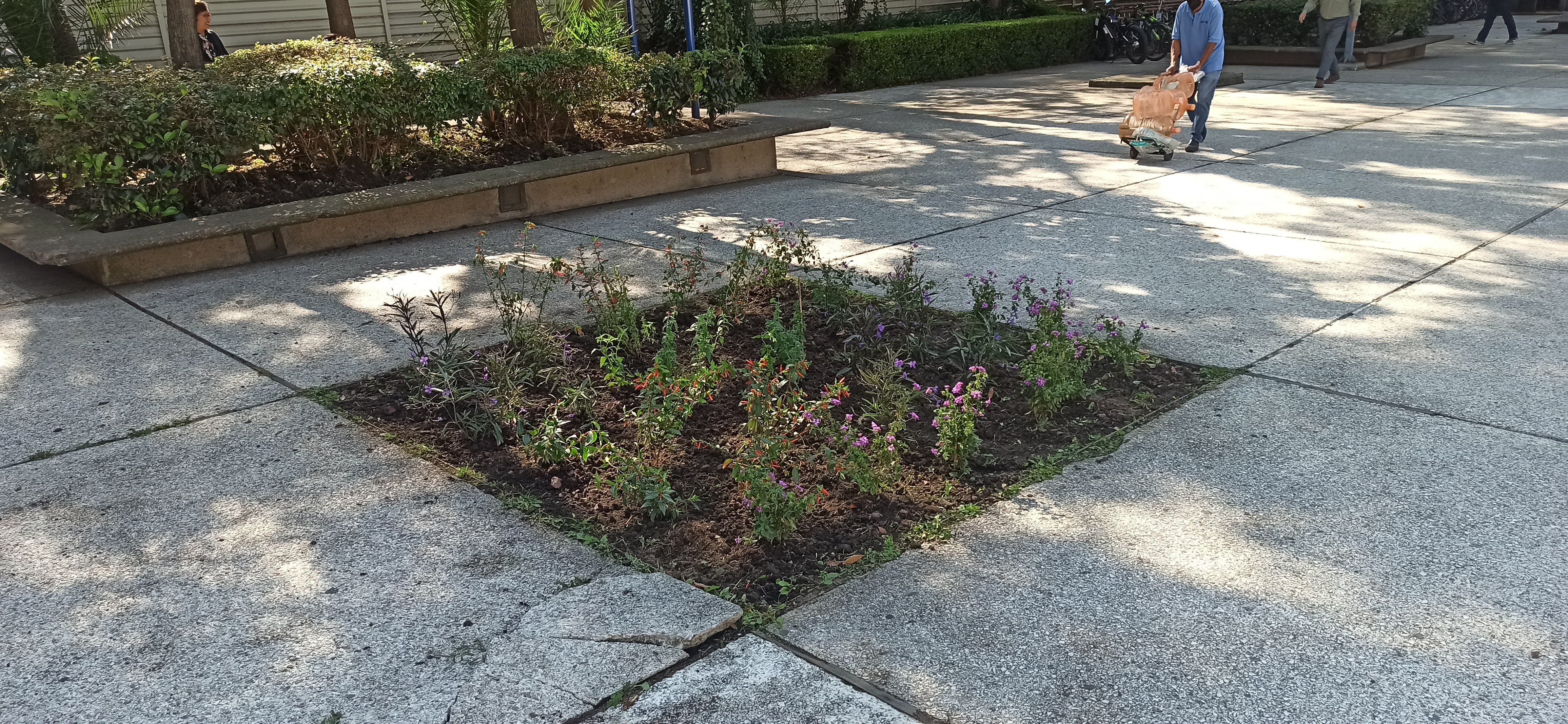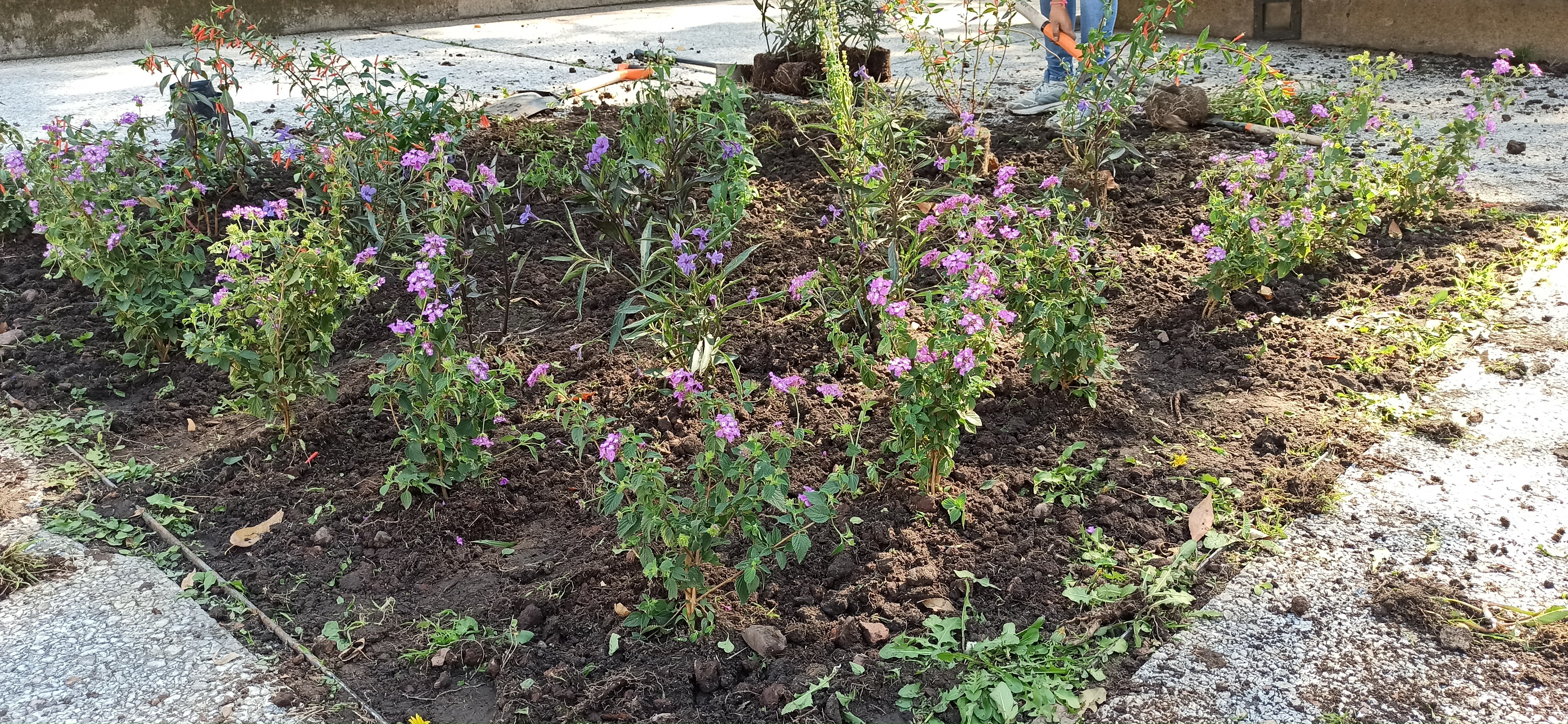 44Como parte del seguimiento del Reto 4 "Sembrar plantas para las abejas”, cuyo objetivo de la Universidad Abierta y a Distancia consiste en participar en la promoción de jardines para favorecer la presencia de polinizadores y el cuidado del medioambiente local, se ha sembrado dentro de las instalaciones de la Secretaría de Educación Pública (SEP), ubicada sobre Av. Universidad un jardín para polinizadores que contiene 12 plantas Ruellia simplex, mejor conocida como Petunia mexicana; 11 plantas Cuphea ignea, conocida como Planta del cigarro, Flor del tabaco o Fosforito; 11 plantas Lantana camara, conocida como Bandera española o Cinco negritos y 8 plantas Agastache mexicana, mejor conocida como Toronjil morado.